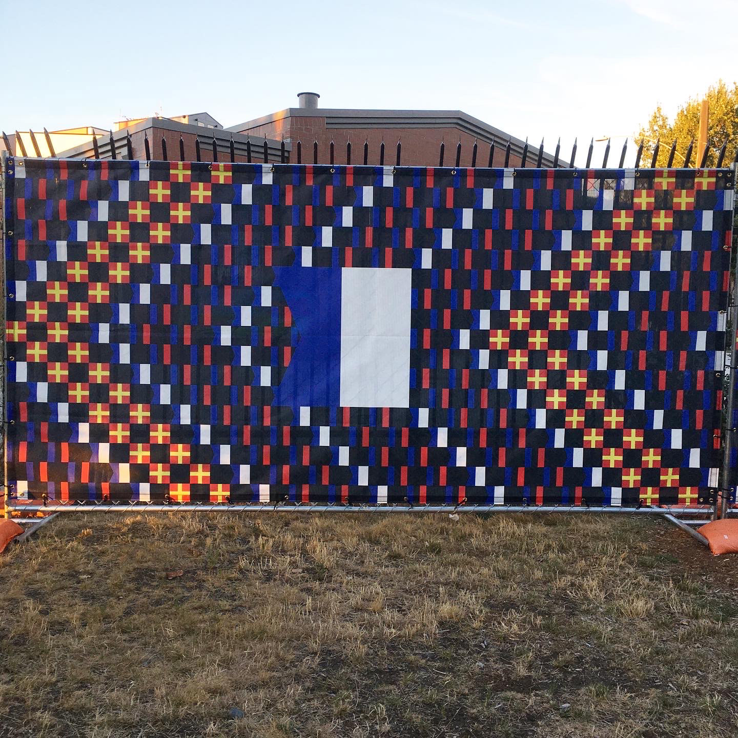 The phrase “TATTARRATTAT” is spelled out using the International Code of Signals. Running parallel to the Burke Gillman Trail and the waterway connecting Lake Union and the Puget Sound. This palindrome visually represents the constant “knock, knock” from a nearby construction site.